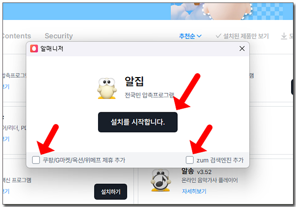 μμ§ μ€μΉ νλ©΄μ΄ λνλλ©΄ μΆκ° νλ‘κ·Έλ¨ μ²΄ν¬λ₯Ό λͺ¨λ ν΄μ ν΄ μ£ΌμΈμ. νμ μλ νλ‘κ·Έλ¨μ λλ€.