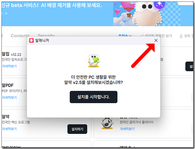 μ€μΉκ° μλ£λλ©΄ νμΈμ ν΄λ¦νμ¬ μ€μΉλ₯Ό μ’ λ£ν©λλ€. μ€μΉκ° μ’ λ£λλ©΄ λ€λ₯Έ νλ‘κ·Έλ¨μ μ€μΉν κ²μΈμ§ μ°½μ΄ λνλλ©΄ μλ¨μ Xλ₯Ό ν΄λ¦νμ¬ μ°½μ λ«μμ£Όμλ©΄ λ©λλ€.