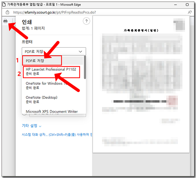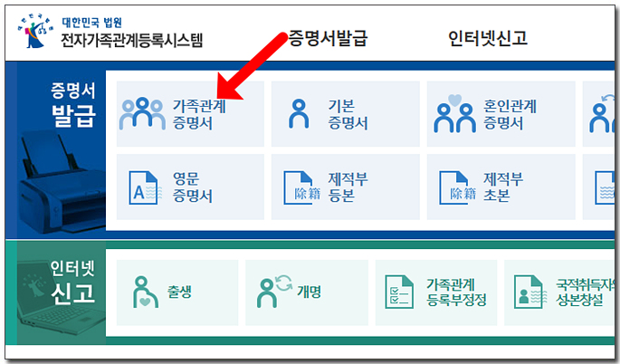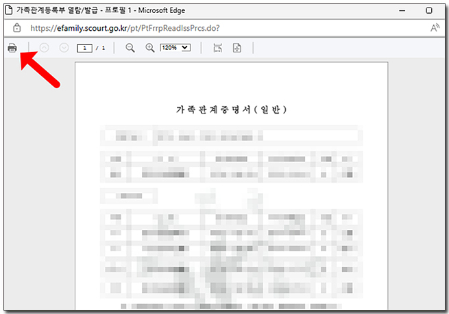 ๊ฐ์กฑ๊ด๊ณ์ฆ๋ช ์ ํ์ด์ง๊ฐ ์ด๋ฆฌ๋ฉด ์๋จ์ ํ๋ฆฐํฐ ๋ชจ์ ์์ด์ฝ์ ํด๋ฆญํด ์ฃผ์ธ์.