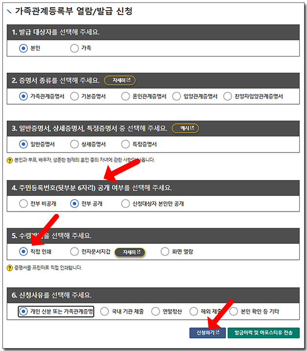 ๊ฐ์กฑ๊ด๊ณ๋ฑ๋ก๋ถ ์ด๋ ํ์ด์ง๊ฐ ์ด๋ฆฌ๋ฉด ์ํ๋ ํญ๋ชฉ์ ์ ํํ๊ณ ์๋ น๋ฐฉ๋ฒ์ ์ง์ ์ธ์๋ฅผ ์ ํํด ์ฃผ์ธ์. ๊ทธ๋ฆฌ๊ณ ์ ์ฒญํ๊ธฐ ๋ฒํผ์ ํด๋ฆญํฉ๋๋ค.