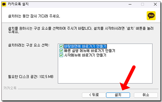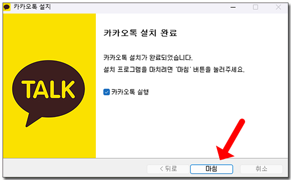 ์นด์นด์คํก pc๋ฒ์ ์ค์น๊ฐ ์์๋๊ณ ์ค์น๊ฐ ์๋ฃ๋๋ฉด ๋ง์นจ์ ํด๋ฆญํด ์ฃผ์ธ์. ์ ์ ๊ธฐ๋ค๋ฆฌ๋ฉด ์๋์ผ๋ก ์นด์นด์คํก ๋ก๊ทธ์ธ ํ๋ฉด์ด ๋ํ๋ฉ๋๋ค.