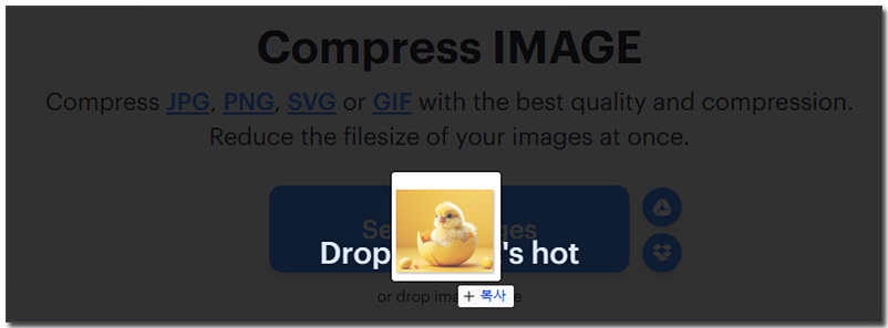 ํ์ด์ง์ ์ ์ํ์ฌ Select images๋ฅผ ํด๋ฆญํ์ฌ ์ด๋ฏธ์ง๋ฅผ ๋ถ๋ฌ์ค๊ฑฐ๋ ๋๋๊ทธ ์ค ๋๋กญ์ ์ด์ฉํ์๋ฉด ๋ฉ๋๋ค.